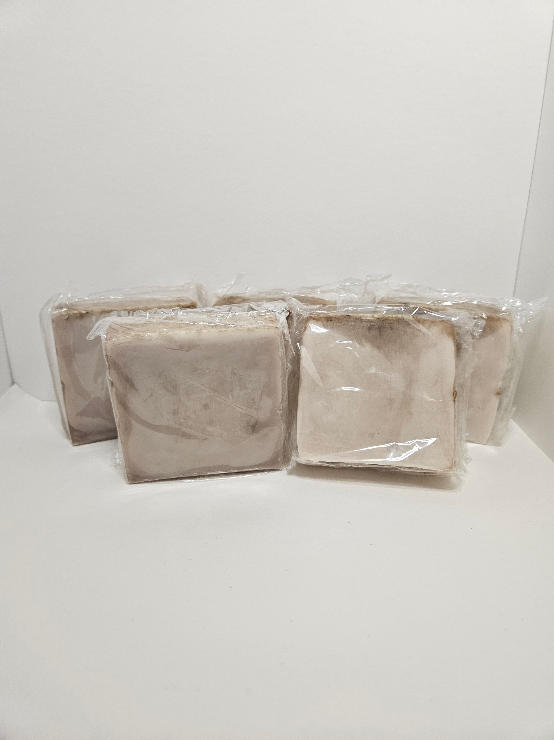Ingredients: Goats milk soap base, Glycerin soap base, Jojoba oil, Coconut oil, Assorted essential oils for fragrance, Soap colorant, Mica powder, Ground and whole oats.