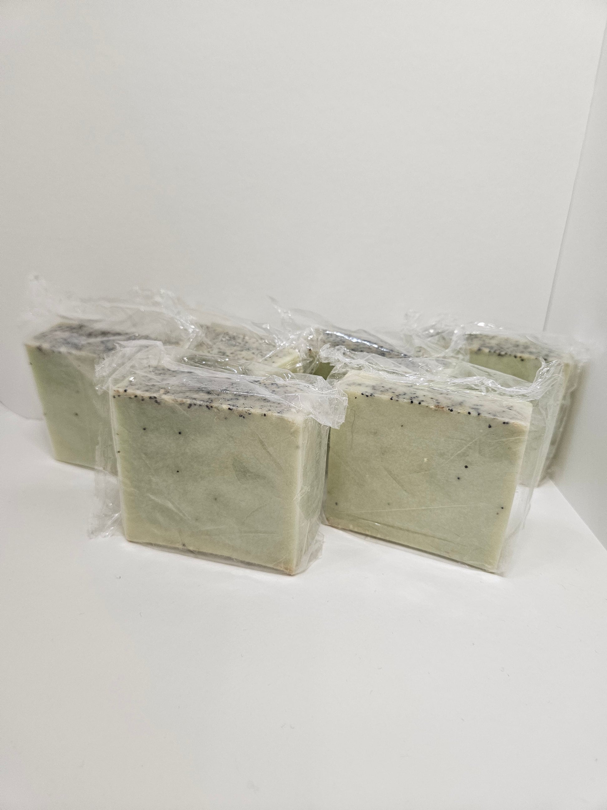 Ingredients: Goats milk soap base, Glycerin soap base, Jojoba oil, Coconut oil, Assorted essential oils for fragrance, Soap colorant, Mica powder, Orange peel, Poppyseed.